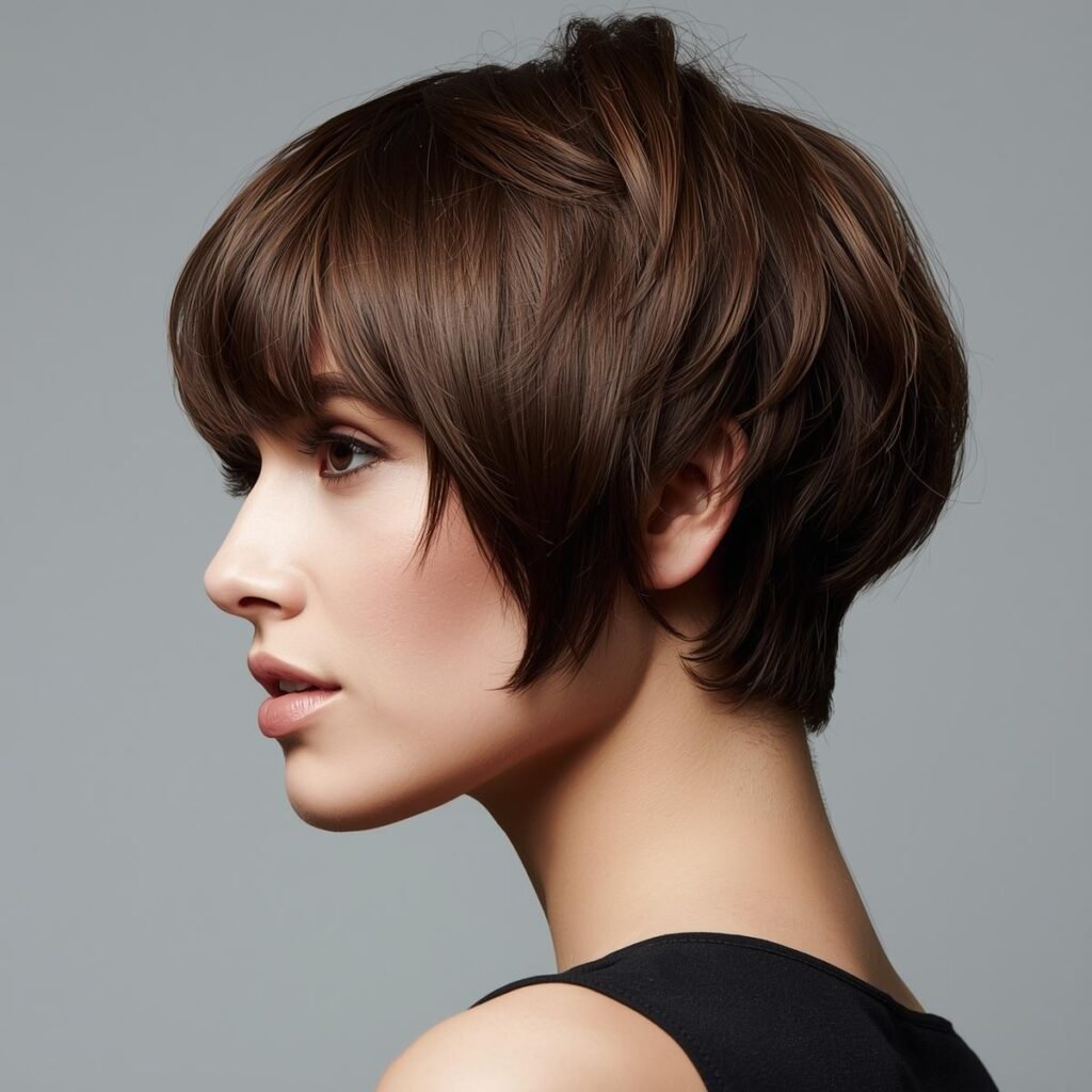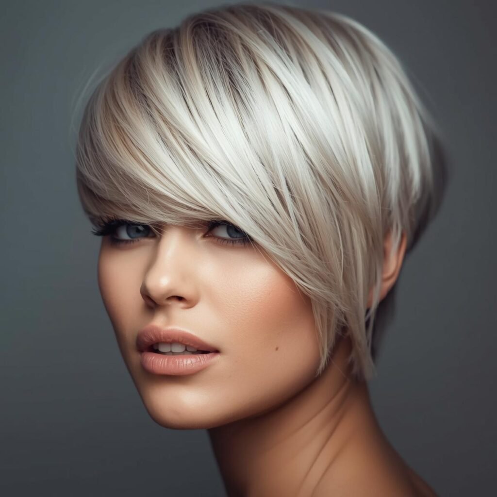 We especially encourage women who love pixie styles to try side-swept bangs, as they add softness and a touch of personality.