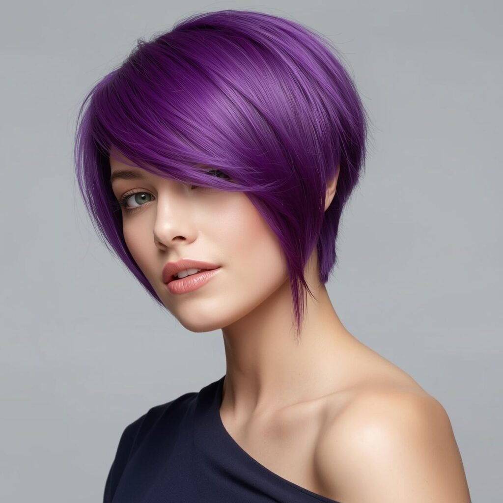Feel free to go wild with your asymmetrical haircut, like with your chosen color. If you’re a cute rebel at heart, electric purple is always a fun option for asymmetrical haircuts.