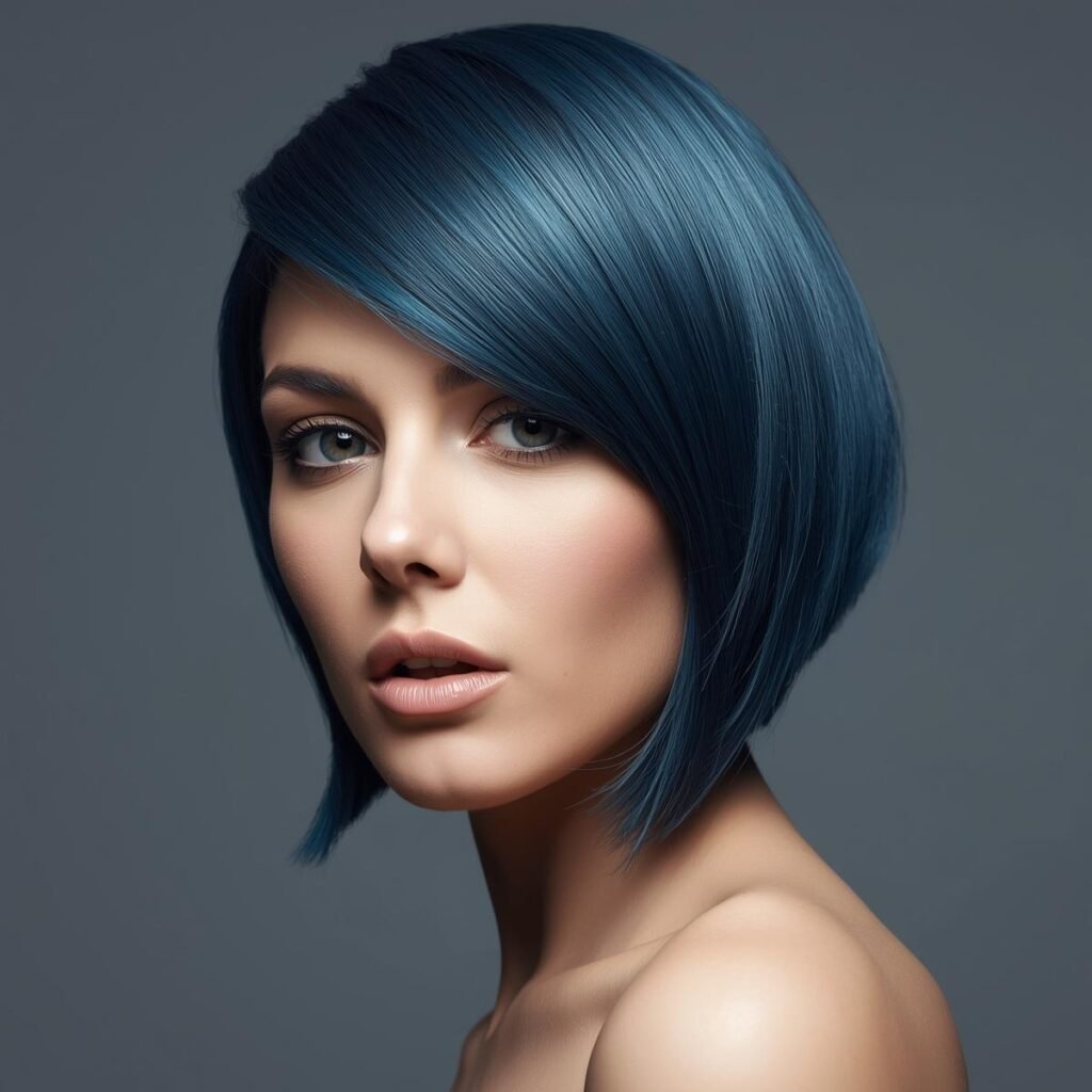 24. Steel Blue Asymmetrical Bobs