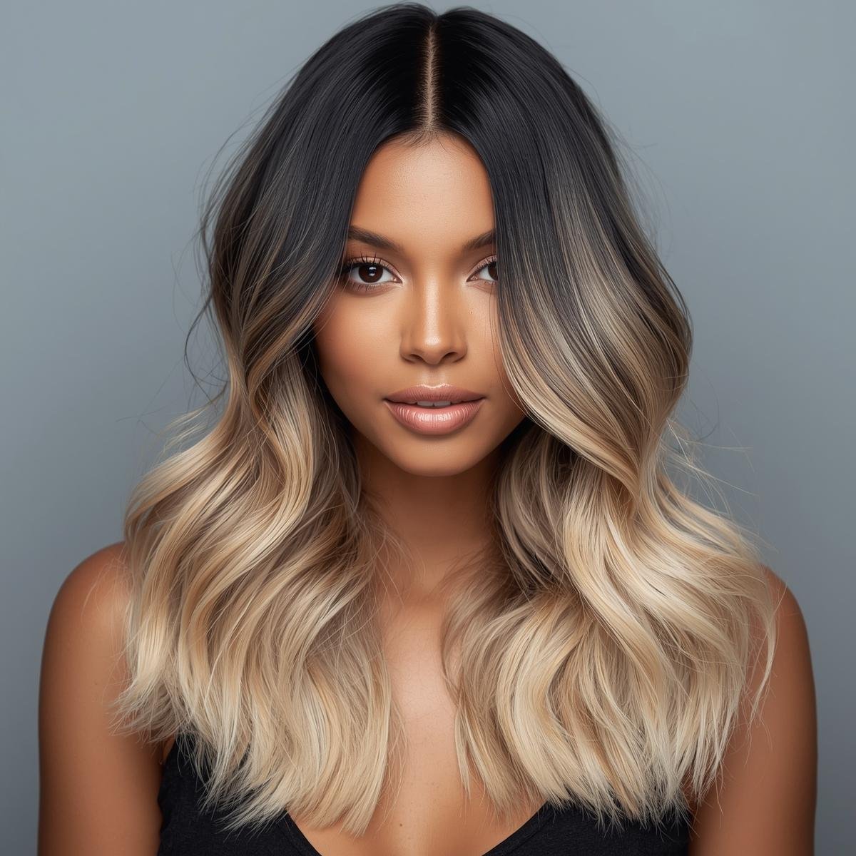 A natural black-to-blonde ombre hairstyle can help you get a chic blonde look. Dark roots and lowlights will also assist you with getting extra volume on your hair.