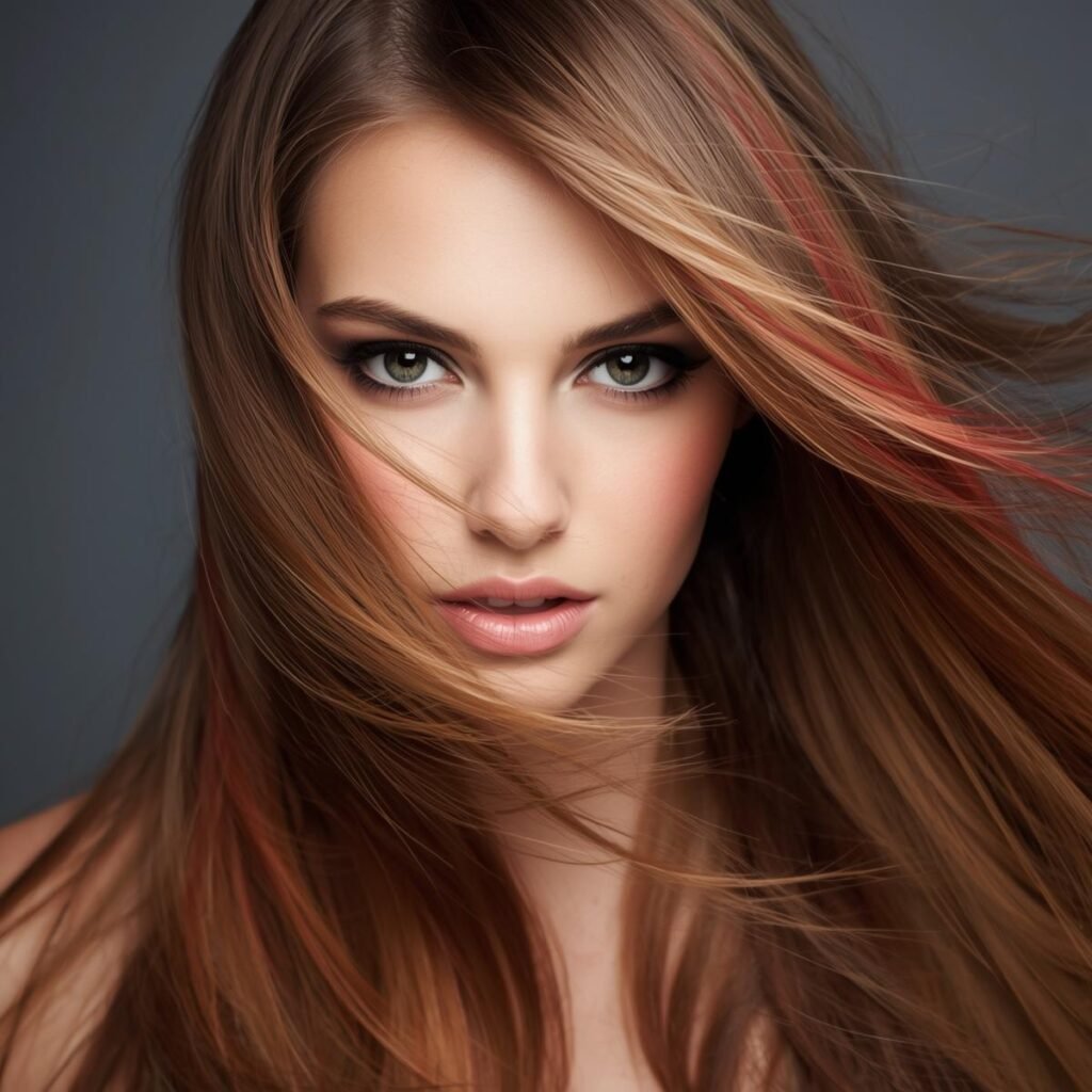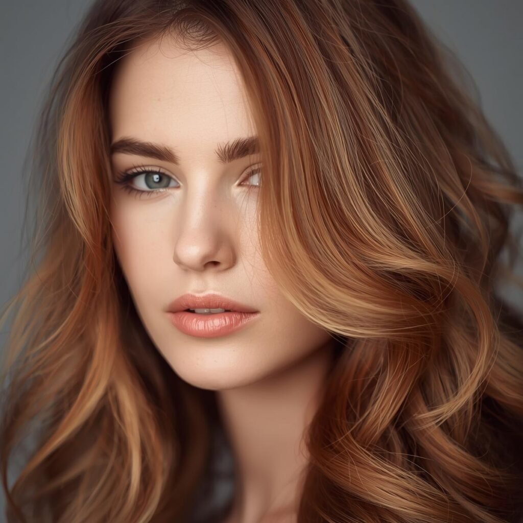 44. Brown Hair with Strawberry Blonde Highlights