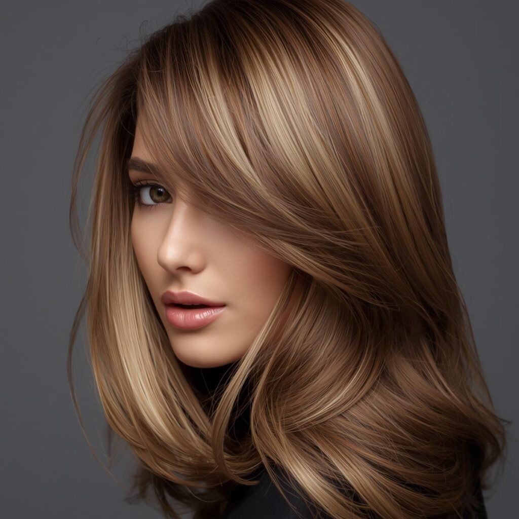 Well-blended highlights will make it seem as if you have solid but very shiny hair color. You should choose this option if you want to add some shimmer to your light brown locks.