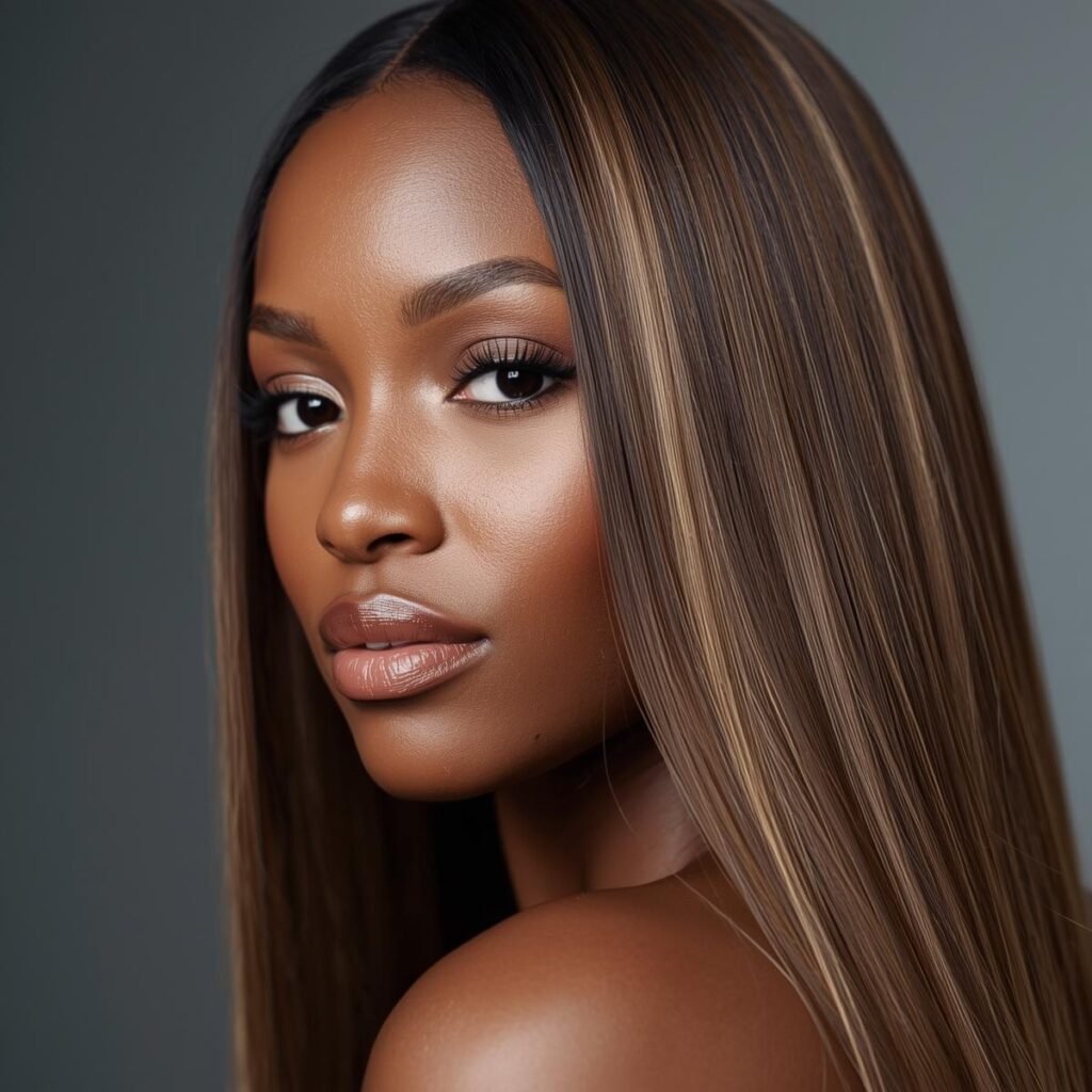 52. Straight Brown Hair with Blonde Highlights