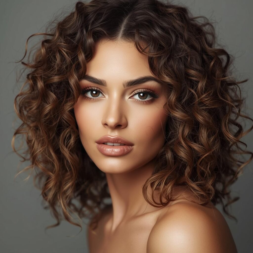 37. Curly Brown Hair and Baby Highlights