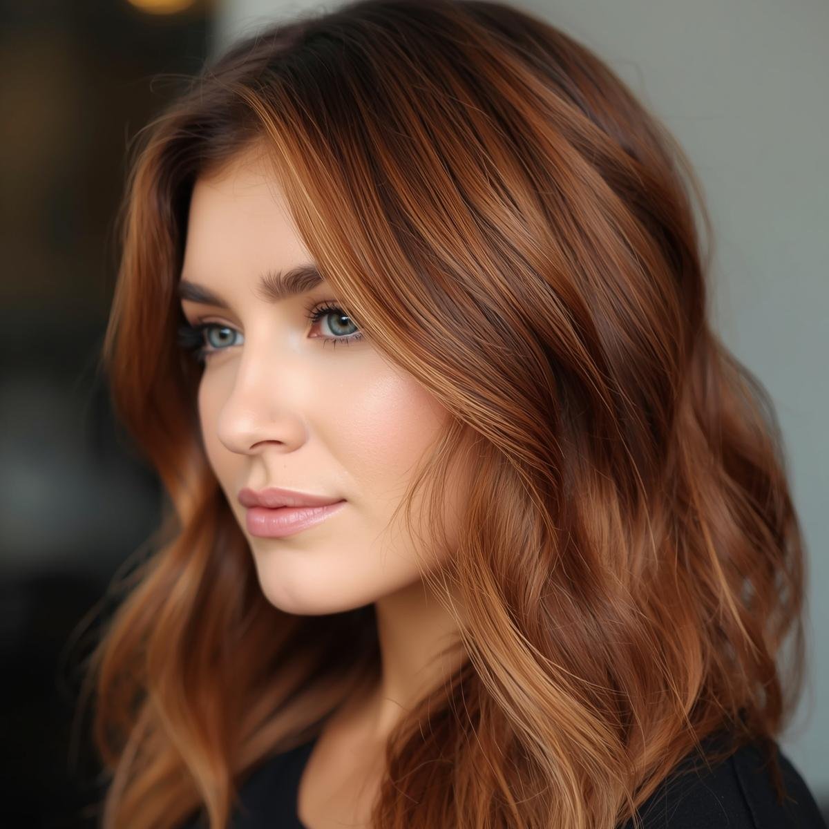 To really bring out the layers and warmth of the color, curl the ends slightly outward or ask for a blowout at the salon. The result is a vibrant seasonal glow with soft, polished movement.