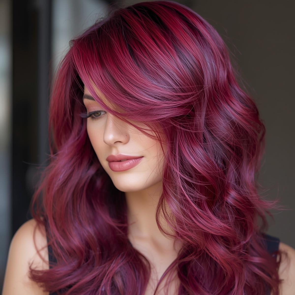 Raspberry is such an underrated hair color, and when done well, it can look absolutely stunning. With the right stylist, this rich hue adds a bold but elegant twist to long hair.