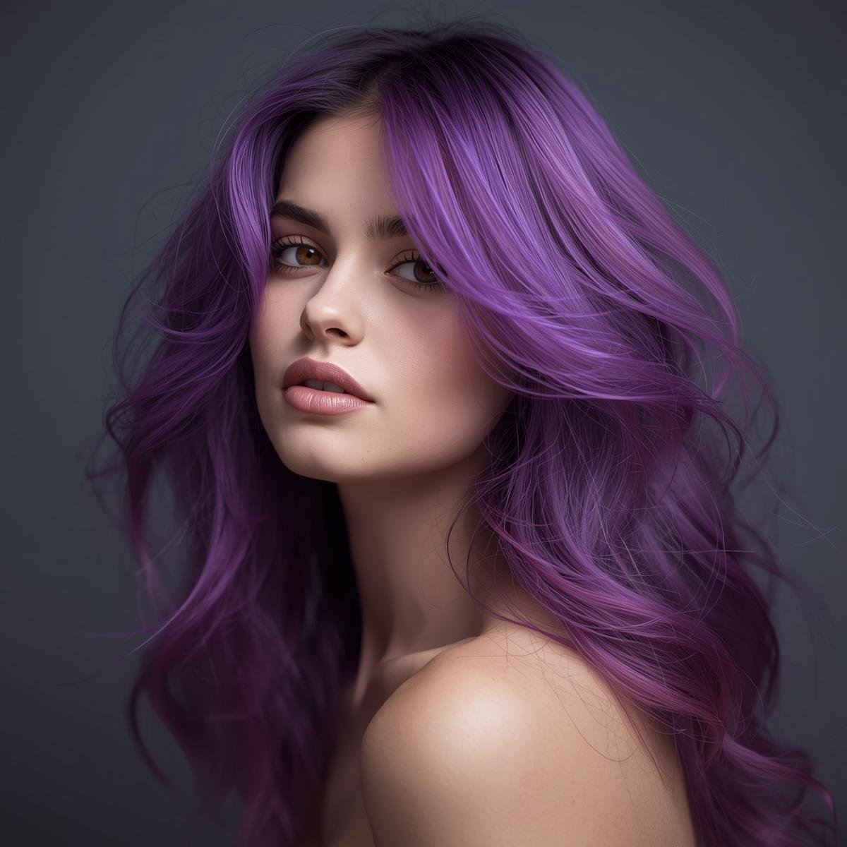 Curl the ends slightly outward to enhance the shape and show off the оттенок. The result is a dreamy, playful finish with a bold touch of purple that feels fresh and unique.