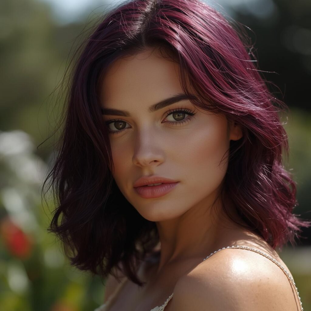 This is an exceptional alternative for women who desire a purple tint to their hair but who don’t want to go over the top. Compared to our plum example from #4, this option is more settled down, with a hint of purple.