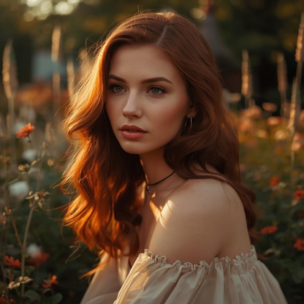 Like with most red hair tones, it looks the best on women with green or blue eyes. It complements well with a thin facial feature and colorful eyes.
