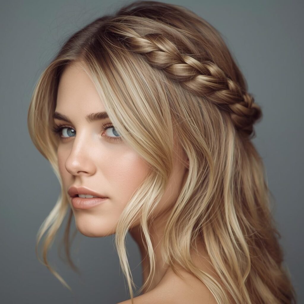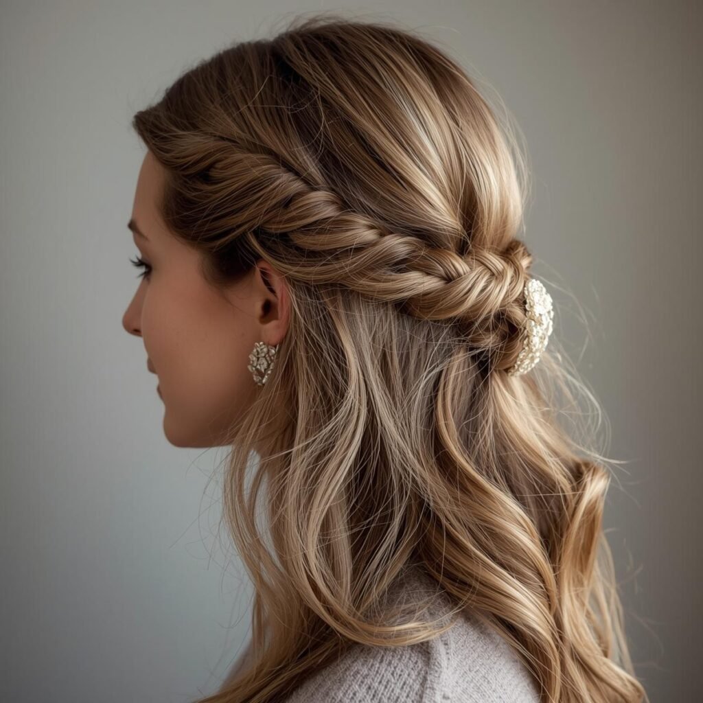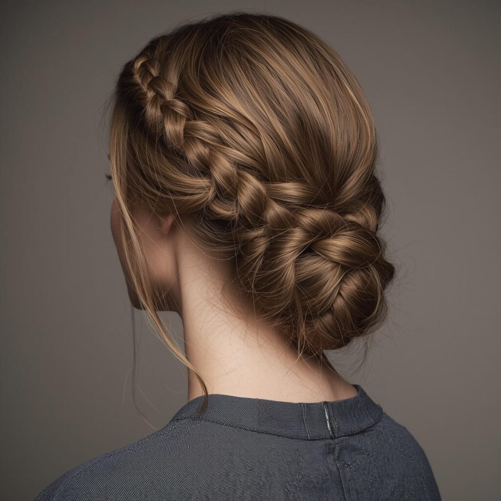 If you have time for a quick braid, try a crown-like style at the back of your head. It’s simple to create and adds a soft, romantic touch.