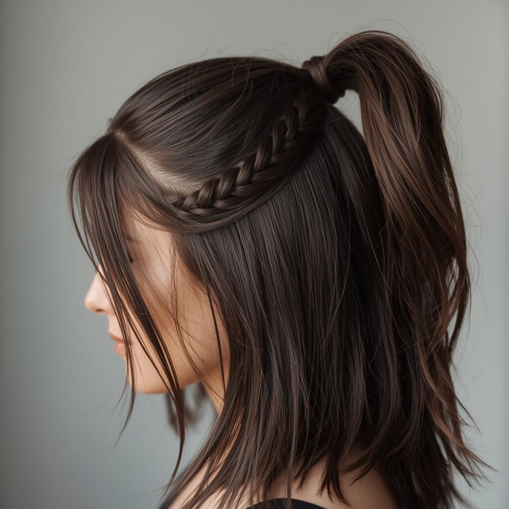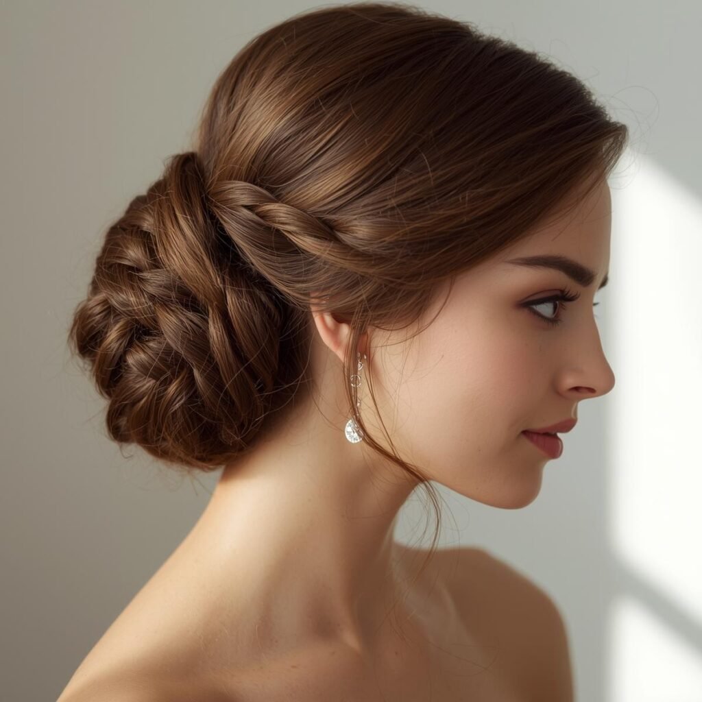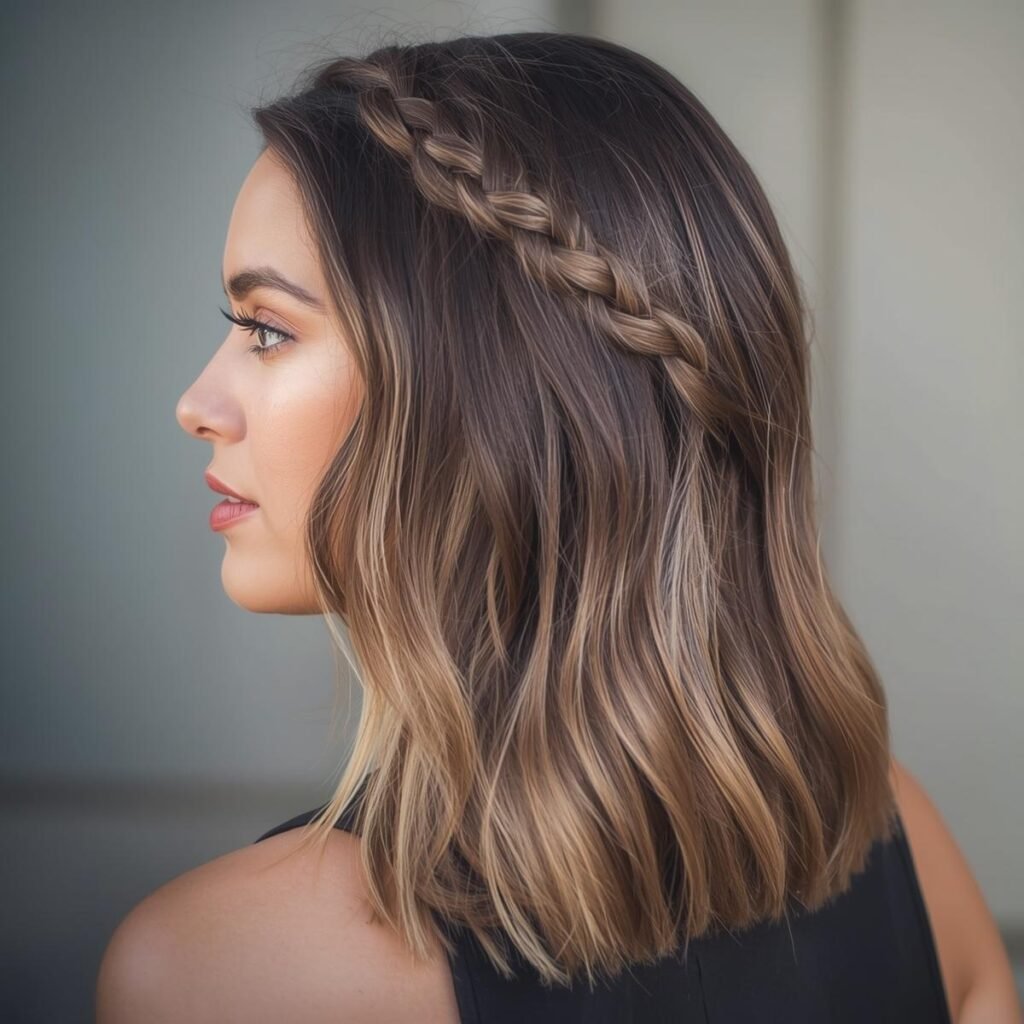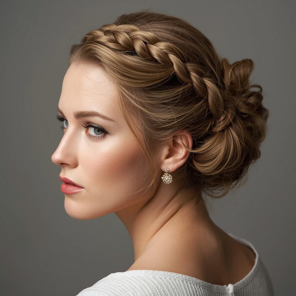 If you have time for a quick braid, try a crown-like style at the back of your head. It’s simple to create and adds a soft, romantic touch.