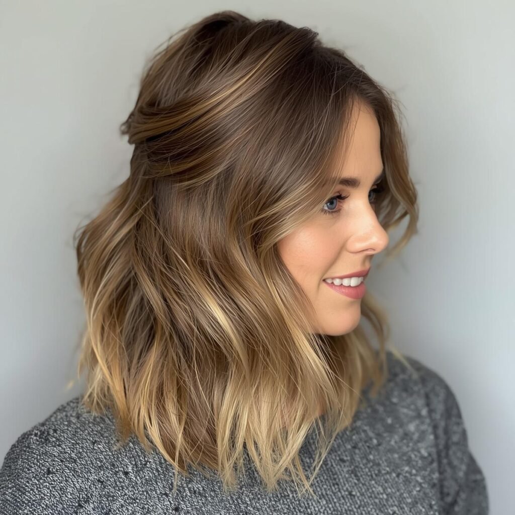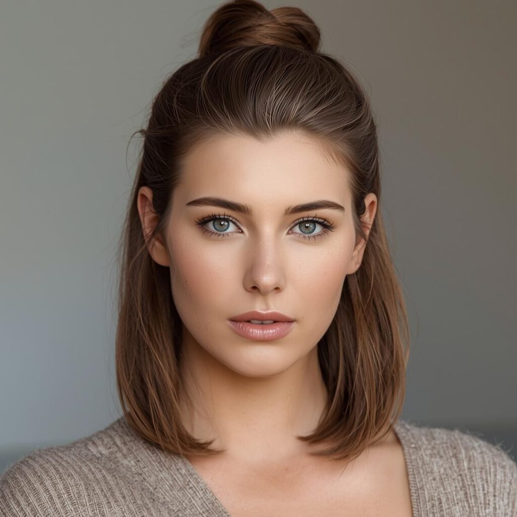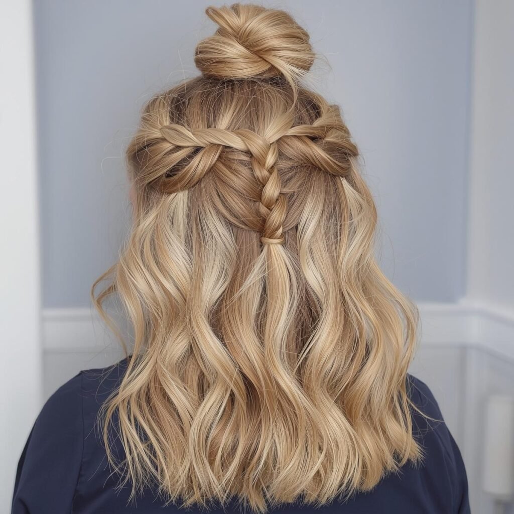 Creativity is key for anyone looking to sport unique medium-length hairstyles. For example, try combining elements from different styles, like a half-up, half-down look that features a braided center part ending in a top knot.