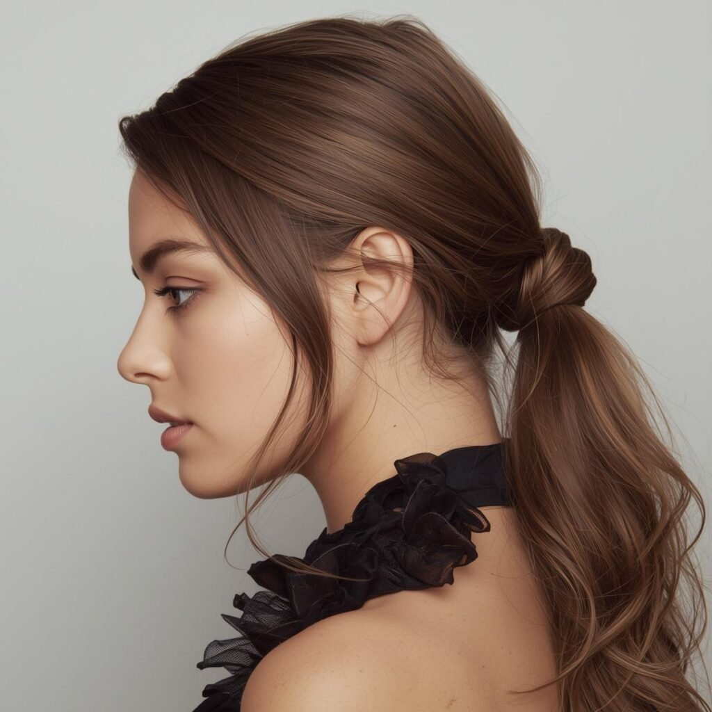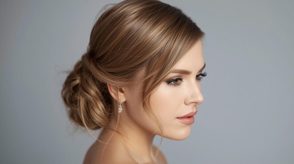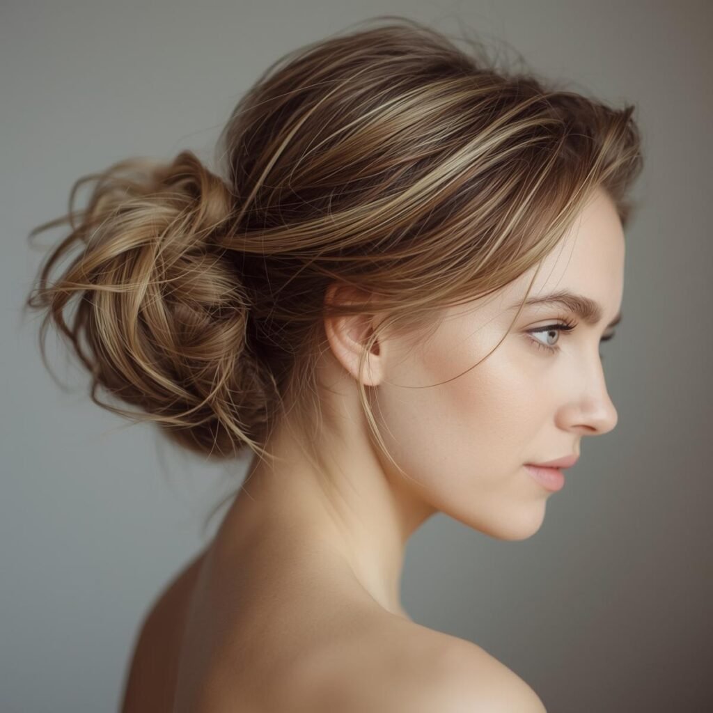 If you prefer a softer, low-key style, try a loose bun that rests at the back of your neck. It’s simple, relaxed, and easy to wear all day.
