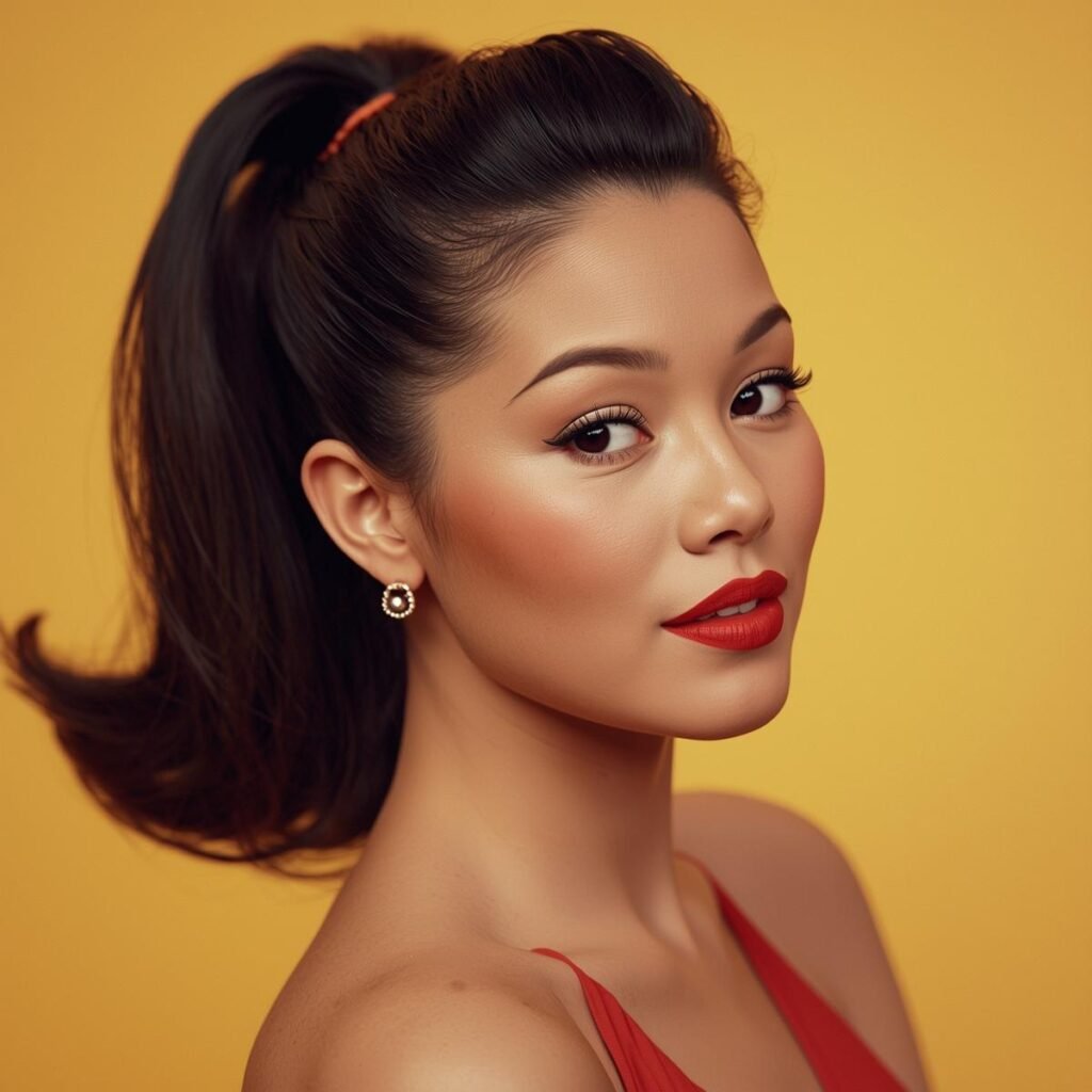 The teased top and back give an irresistible pin-up glow. Any classic ponytail can go from usual to glam with a bit of teasing. After tying up the hair, pull it a bit on the sides and fluff it on top. If you have bangs, pin them back and keep on teasing until you get all the volume you want.