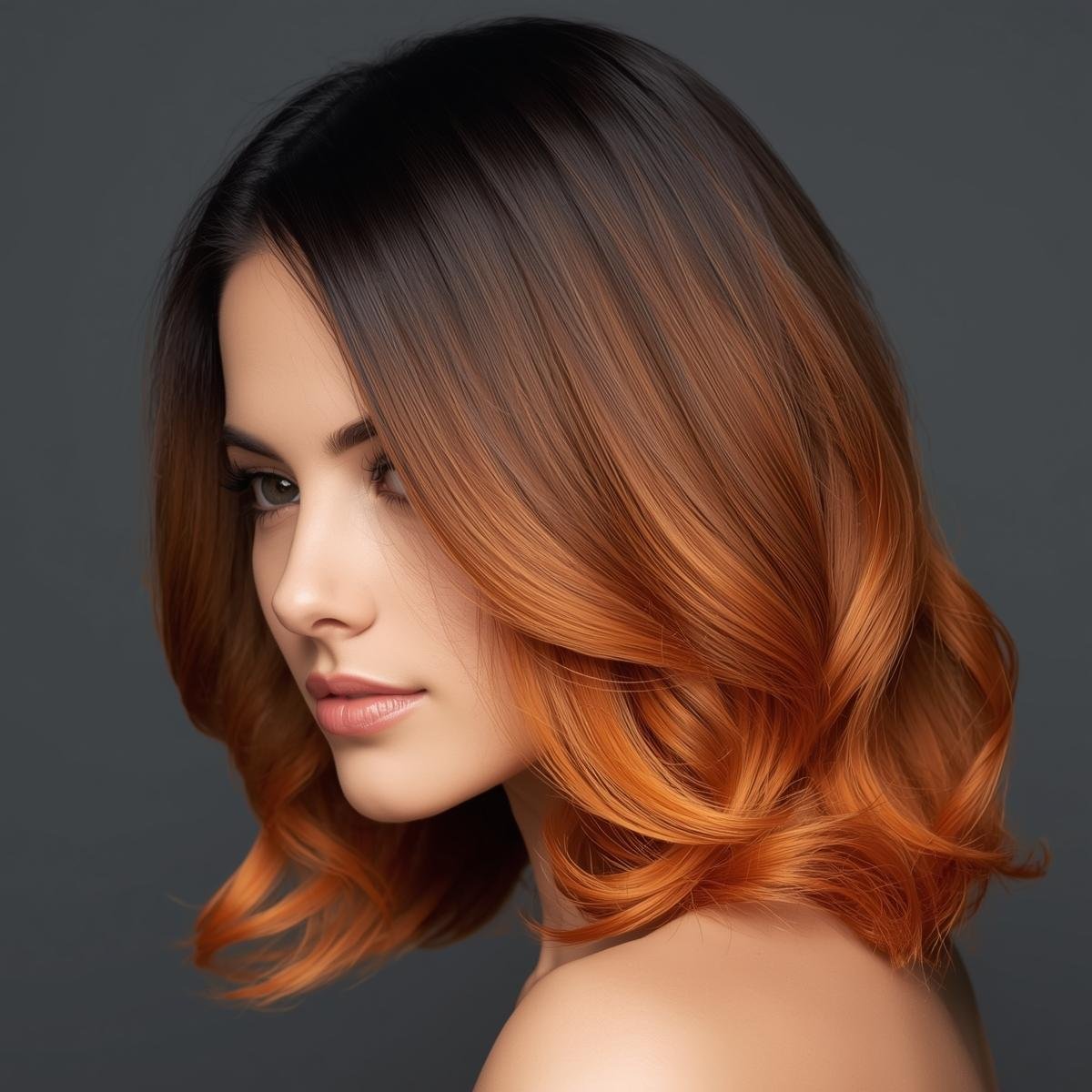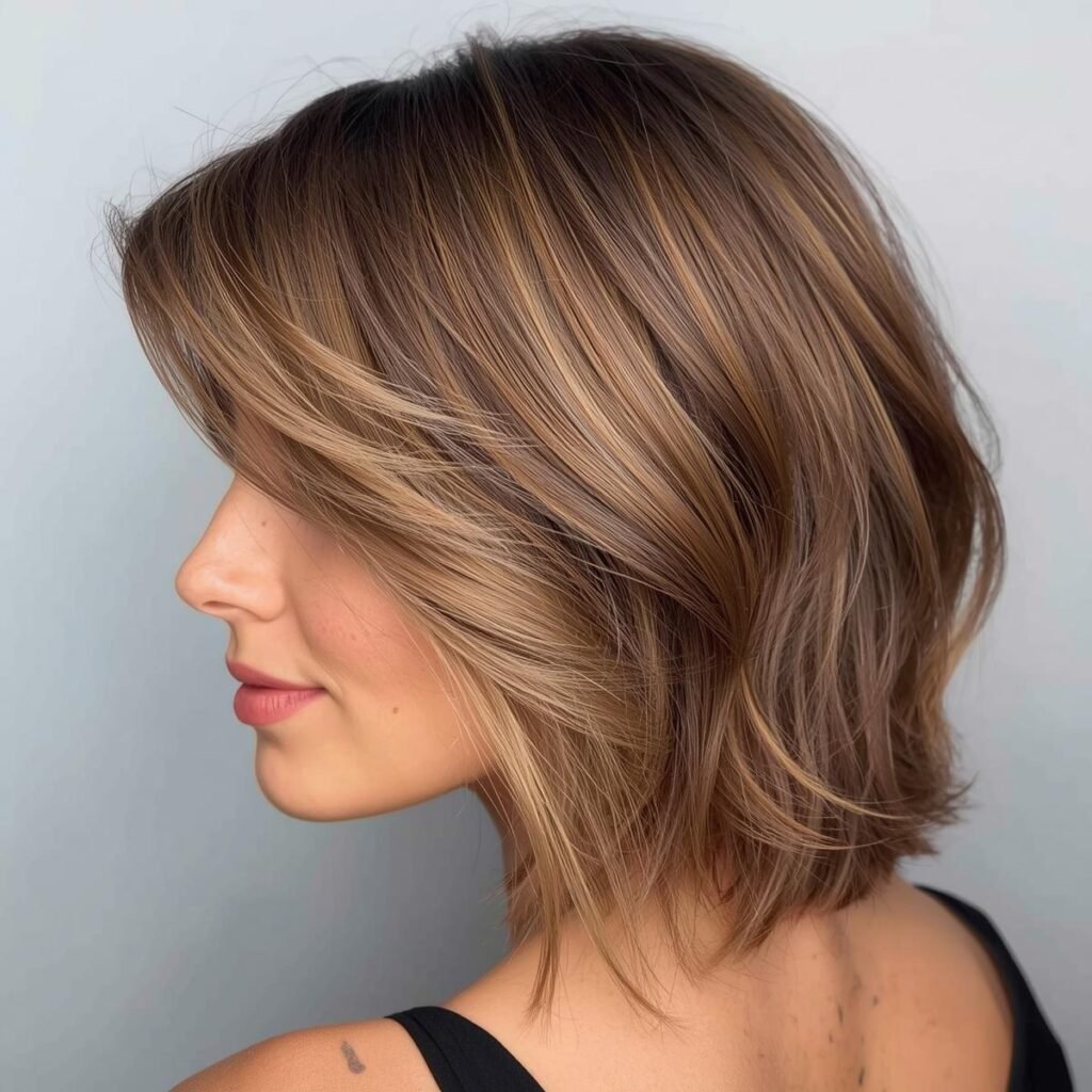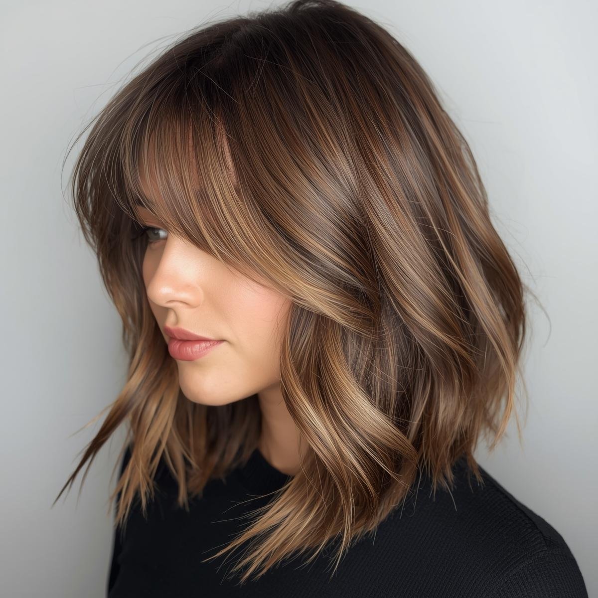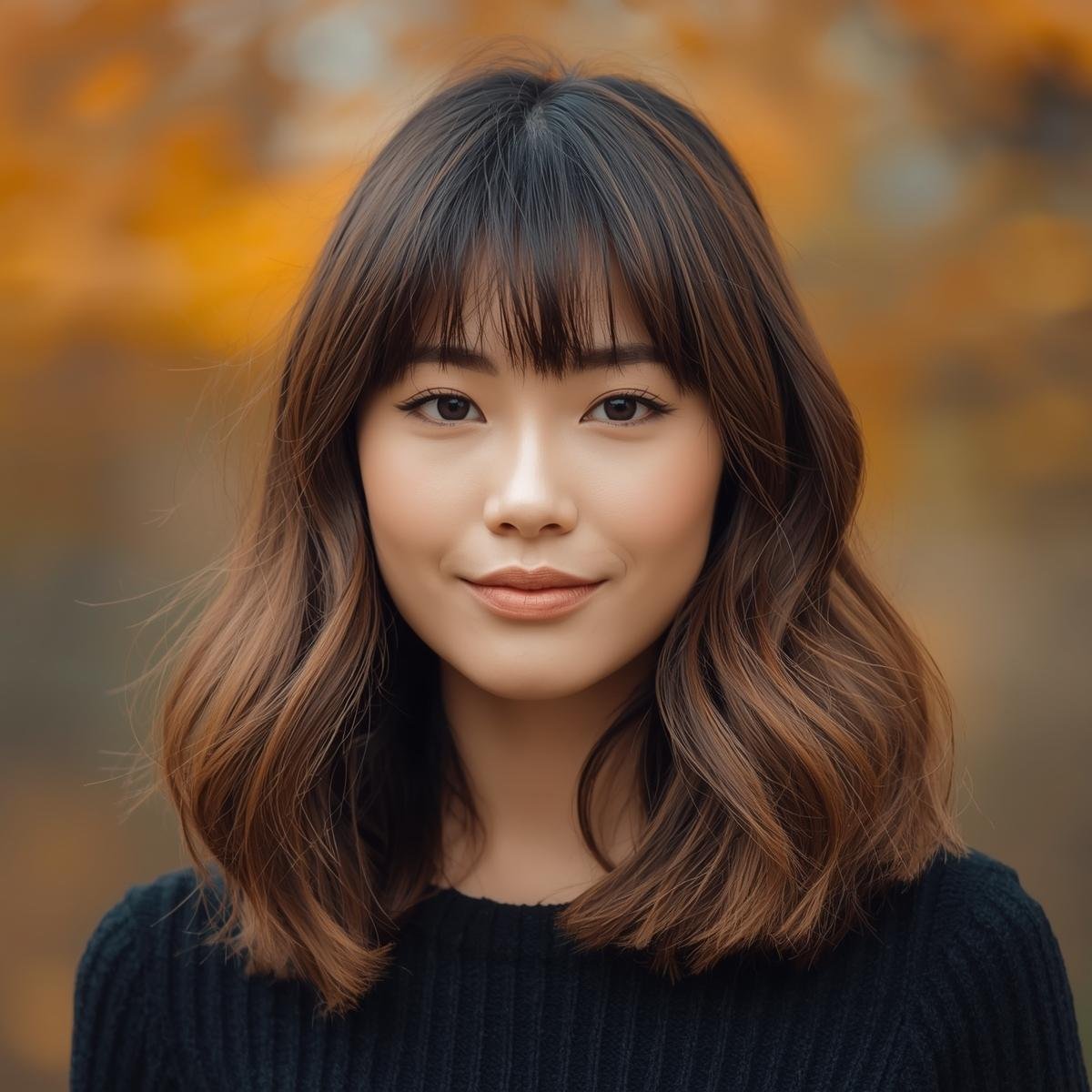 Warm fall tones look beautiful on shoulder-length hair, adding depth and richness to the overall style. The shades create a cozy, seasonal vibe that stands out.