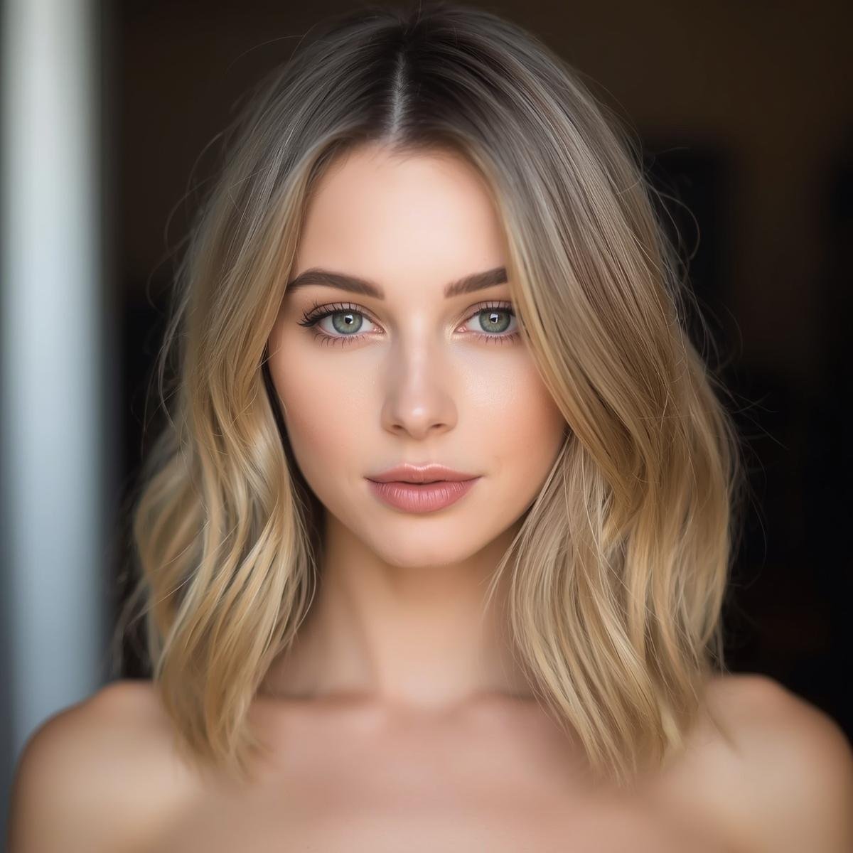 Blonde shoulder-length hair is one of the most popular styles for women. She kept it simple with a clean middle part and a natural finish.