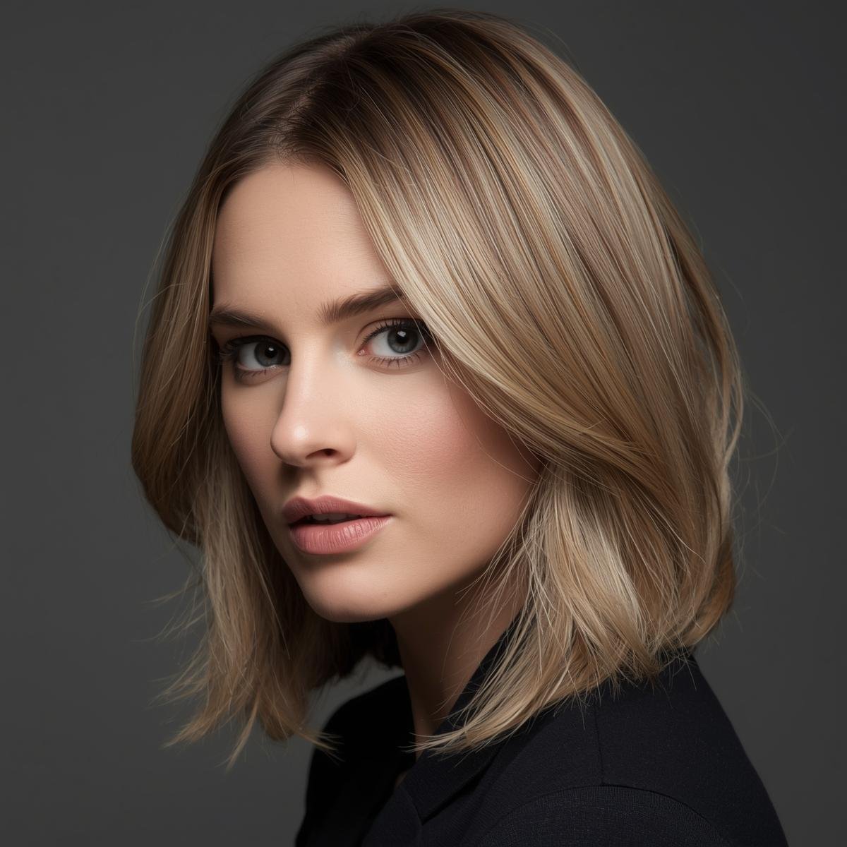 Lobs are a popular choice for shoulder-length hair, offering a clean and modern look. She kept hers relaxed and straight with a simple side part for an easy finish.