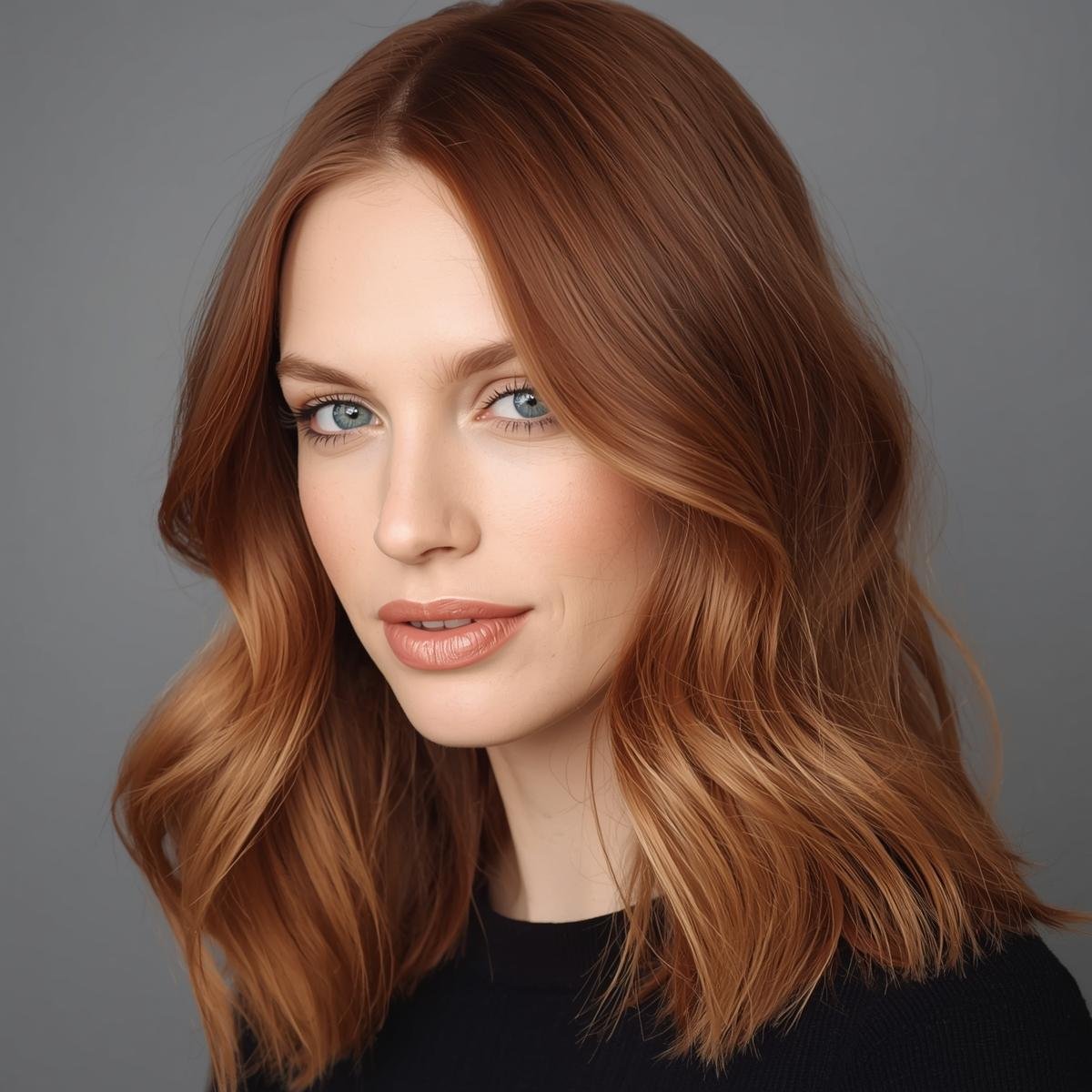 Copper is one of the prettiest, trendiest hair colors to try. She kept her thick hair at shoulder length and styled it with soft, natural waves.