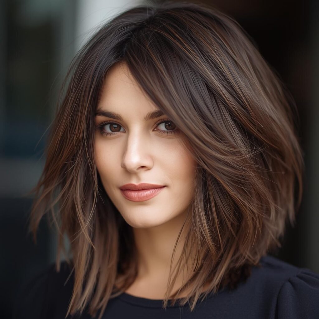 Add a few long layers and curtain bangs, and you’ll have a balanced, stylish finish.