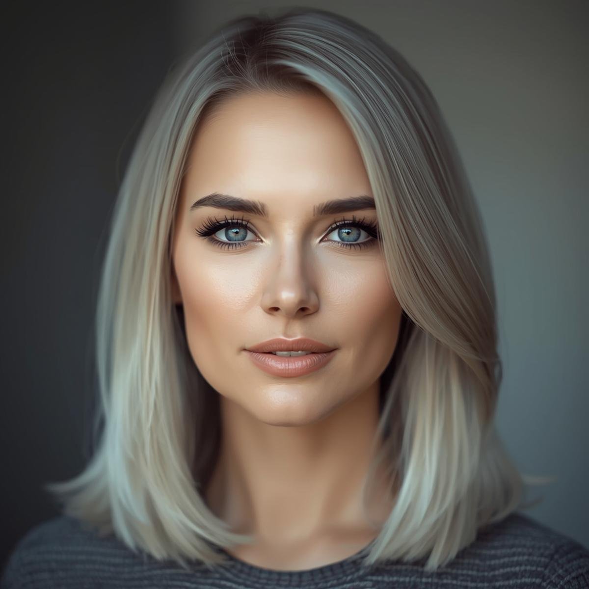 Silver and blonde hair is such a striking combination. She kept her hair right at shoulder length and styled it soft and straight for a clean finish.