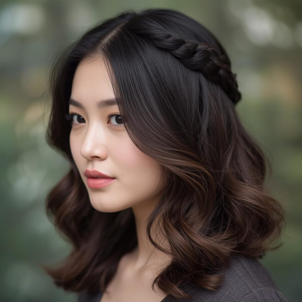 Braid a few strands to frame your face beautifully and add a soft, flattering detail.