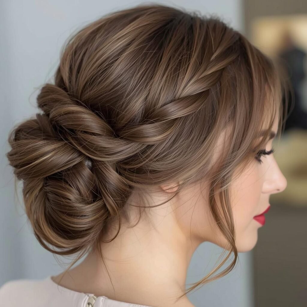 To add interest, include two or three braids flowing into the bun, like a fishtail or rope braid, for an elegant yet playful finish that works for both formal and casual looks.